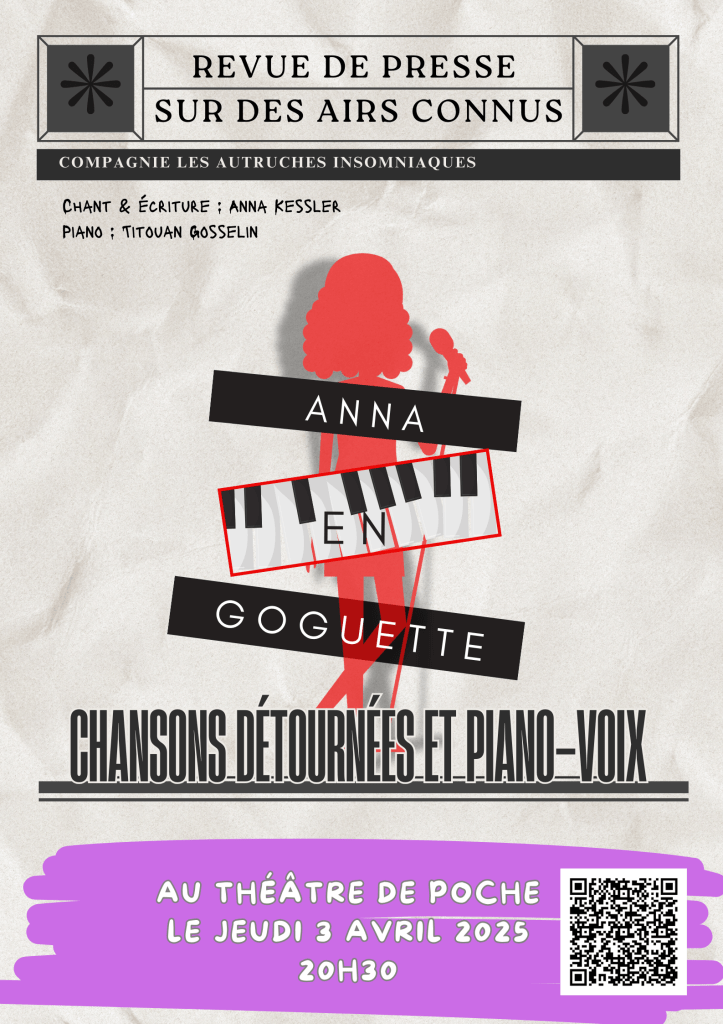 Anna s’empare d’airs bien connus de la chanson française pour en changer les paroles et chroniquer avec espièglerie une actualité à la fois politique et intime, engagée… et poétique !