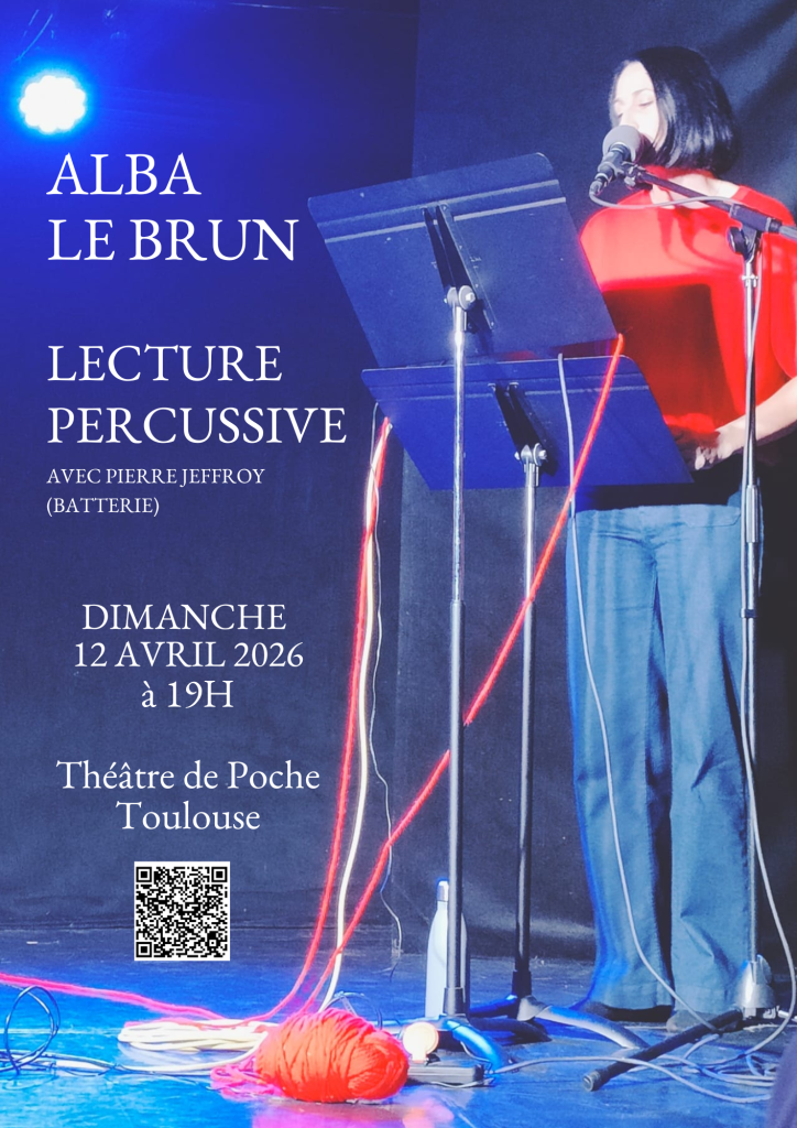 Lecture performance avec Pierre Jeffroy aux percussions et Marine Varlan, interprète LSF pour quelques extraits.