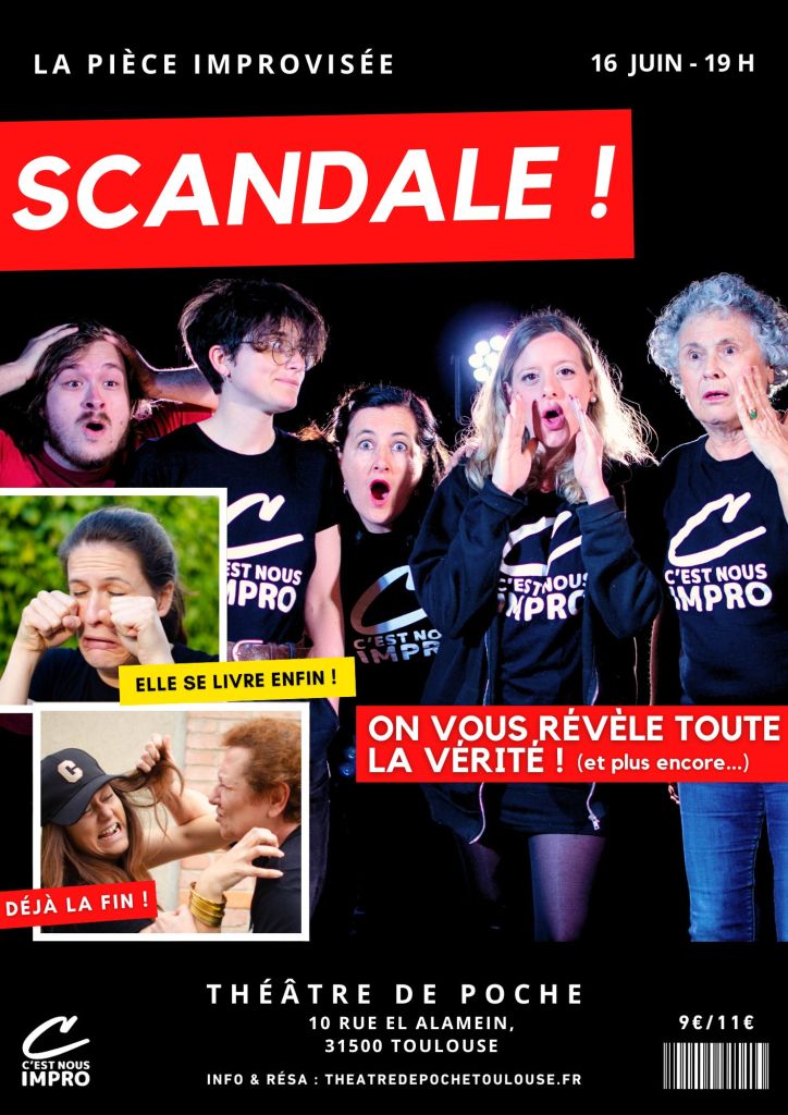 Plongez dans l’univers pétillant de « Scandale ! », un spectacle d’improvisation où les élèves des ateliers du Théâtre de Poche se transforment en artistes de l’instant.