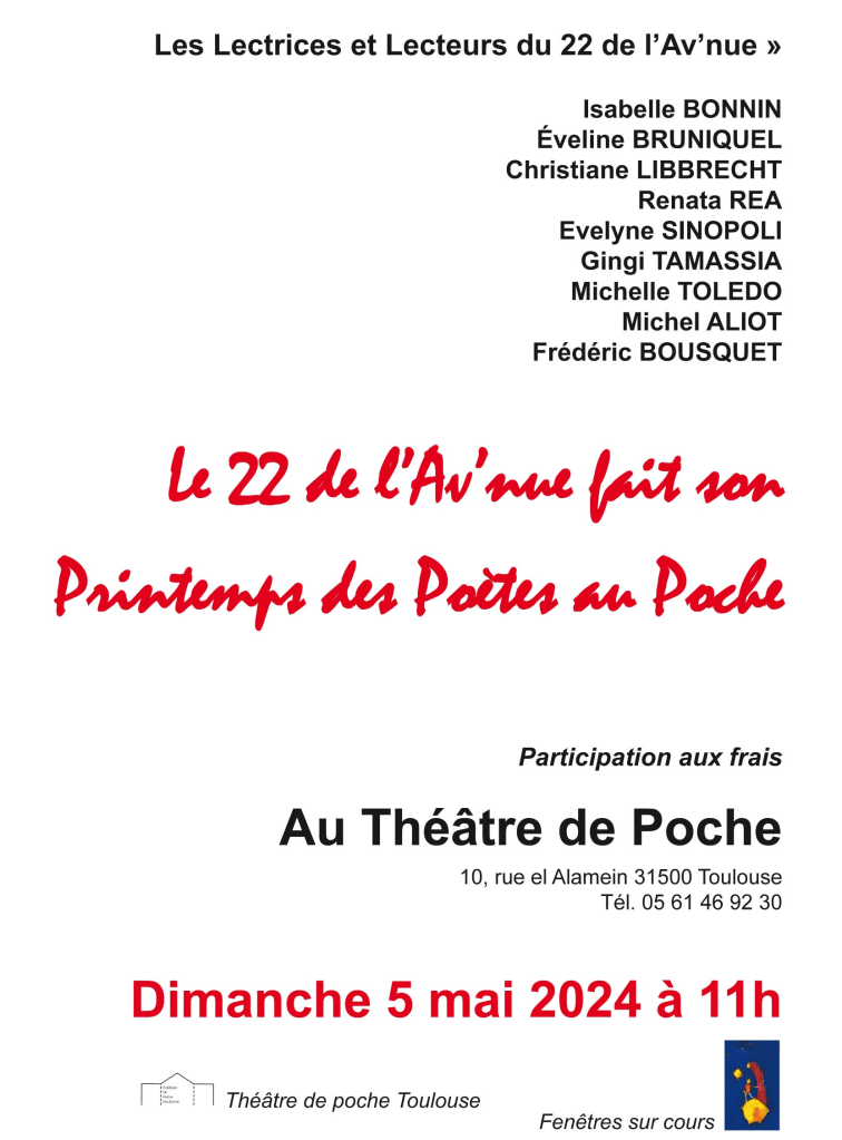 Dans le cadre du »Printemps des Poètes » ayant pour thème cette année »La grâce », neuf voix nous enchanteront avec des textes et poèmes sélectionnés avec soin. Un petit régal pour les oreilles en ce dimanche matin de mai.