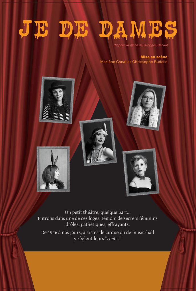 La loge d’artiste devient ici le témoin de secrets féminins, tour à tour drôles, effrayants, pathétiques, tragiques ou mystérieux. De 1946 à nos jours, comédiennes, divas, artistes de music-hall, cantatrices, strip-teaseuses, etc… se préparent pour un ultime numéro. Rien que pour vous, le temps d’une représentation unique en son genre, une loge vous ouvre ses portes pour vous dévoiler ses secrets. Pénétrez dans l’intimité de ce théâtre, sentez son âme d’autrefois reprendre corps et surtout revivez six joyaux d’humanité meurtrie, six éclairs de vie ratée, gâchée ou rêvée… le tout composé au féminin !
